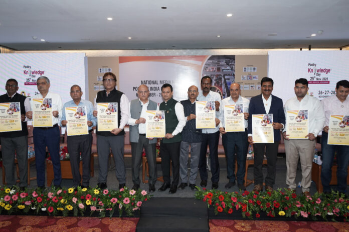 The event unveiled details of the upcoming 17th Poultry India Expo-2025, scheduled from November 25–28, 2025 at HITEX Exhibition Centre, Hyderabad, and the Knowledge Day to be held on November 25 at Novotel, Hyderabad.