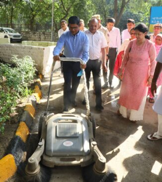The Chairman, NDMC Inaugurated Mechanical sanitation – mechanised sweeping in place traditional sweeping by brooms and introduced the mechanical sanitation scheme at the Bapu dham Colony, it is first of its kind in NDMC colony where sweeping and other sanitation work will be done through mechanical apparatus and tolls. Bapu Dham colony becomes Delhi first colony with mechanised sweeping.