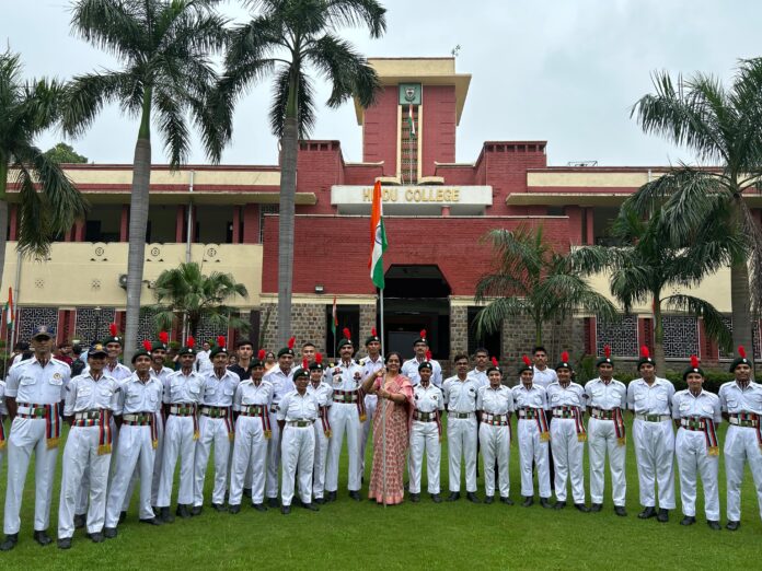 In her address, the Principal highlighted the significance of the Har Ghar Tiranga campaign, which was enthusiastically participated in by the NSS volunteers and non-teaching and faculty members. Additionally, the NCC cadets of Hindu College Navy Wing organized a Tiranga Prabhat Feri, showcasing their patriotic spirit. She also informed that two NCC cadets from Hindu College, namely Sabhya Kumar and Abhishek, have been selected to participate in the Independence Day celebration event at the Red Fort.