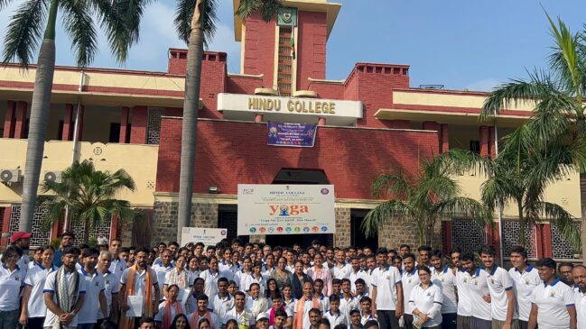 On the occasion, Principal Prof. Anju Srivastava said, “It is heartening to see Hindu College come together for this inspiring session of the Common Yoga Protocol, which Prime Minister Narendra Modi led from Visakhapatnam, Andhra Pradesh.” She further remarked that yoga is not just a practice but a way of life. “Our collective participation today echoes the theme of this year – Yoga for One Earth, One Health – which highlights India’s timeless message of holistic well-being and environmental harmony.”