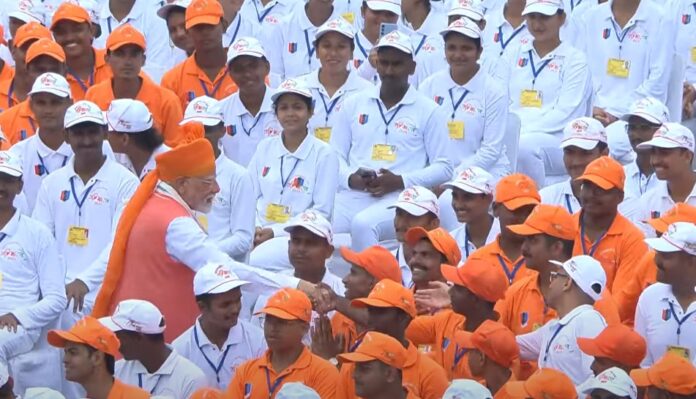 New Delhi: Prime Minister Narendra Modi on Friday greeted the countrymen on the 79th Independence Day from the ramparts of the Red Fort. In his address, he emphasized on the progress, unity and future plans of the country. PM Modi announced the ‘PM Vikasit Bharat Rojgar Yojana’ from the Red Fort, which aims to provide employment opportunities to the youth. A large number of NCC cadets were present at the Red Fort to listen to his speech.